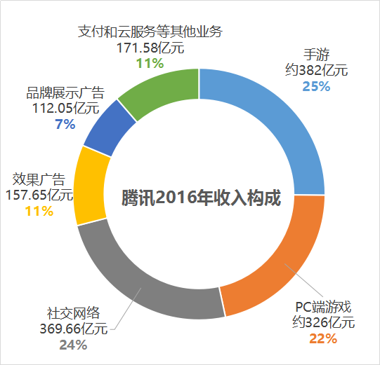 对比腾讯2016年财报可算出,腾讯游戏吃都了43%的市场份额,手游则47%。也就是说,无论是手游还是整个游戏行业,腾讯都占据了半壁江山。