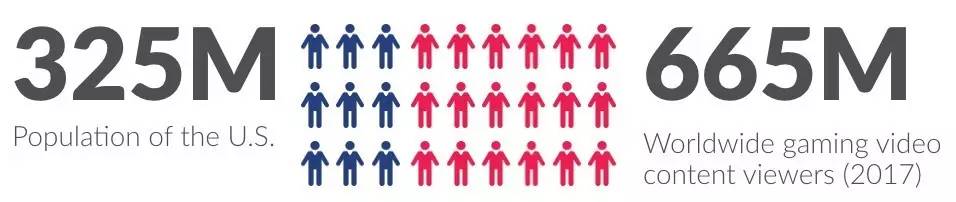 根据测算,2016年全球游戏视频的受众体量已经达到6.2亿人,2017年预计将达到7.9亿人。游戏视频用户群体近几年始终保持着稳定的增速,并且在未来几年内保持着可期的增长空间。