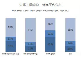 与平台入驻情况类似,签约直播平台的头部主播转换平台比例最低,达29%。而签约其他组织的主播转换平台的比例最高,达64%。签约直播平台,对于主播的粘性提升最大。