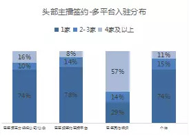 头部主播中,相比于个体主播,签约直播平台最管用,只入驻1家平台的占比提升4%。签约第三方公会/经纪公司则差别不大。