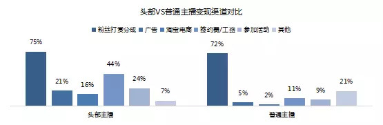 因此,打赏只是主播粉丝效应的直接体现,随着主播粉丝积累,自身流量入口的地位逐步凸显,与之相关的流量变现渠道也更加多元化。