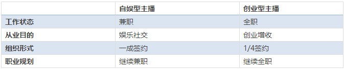 尽管全民直播风潮已来,但在“怎样做”和“为什么做”等问题上,主播内部呈现明显的分化,形成了一类是以娱乐社交为目的兼职主播,我们称之为自娱型主播;一类是以创业增收为主要目的全职主播,我们称之为创业型主播。