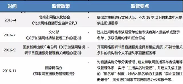 为了规范直播平台的运营,政府从2016年开始密集出台对直播行业的监管政策,消除主播低俗和违法等行为带来的不良影响。