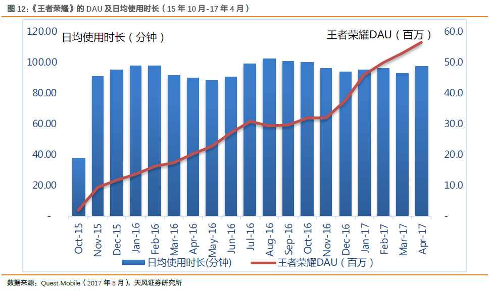 (图为王者荣耀DAU及日均使用时长,来自天风证券报告)