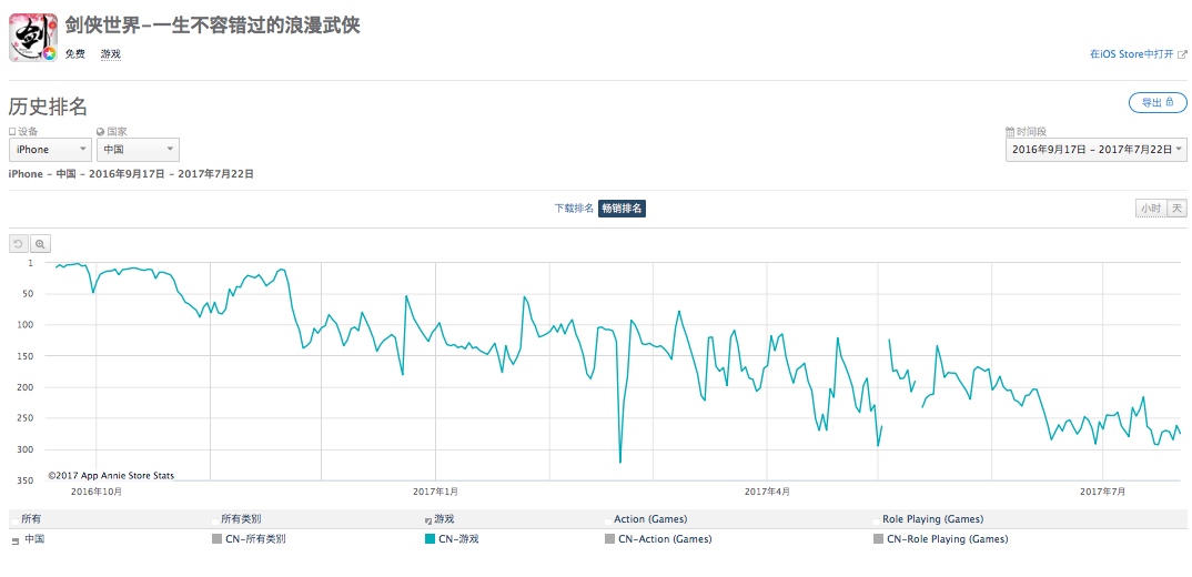 《剑侠世界》开服仅8小时就拿下了App Store畅销榜TOP3的位置,官方公布首日DAU超100万。目前《剑侠世界》的排名处于200-300之间。