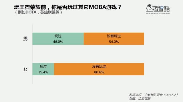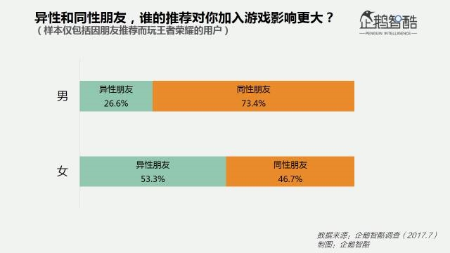 调查发现:《王者荣耀》80%以上的女性玩家是第一次玩MOBA类游戏,女性玩家开始玩的原因里,因为周围朋友玩而好奇、被朋友推荐进来的比率高于男性。