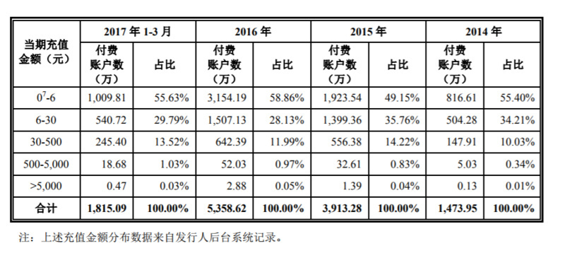 作为一款休闲类游戏,《开心消消乐》的用户付费深度也许比不上重度游戏,后者可能会出现不少玩家往平台上充好几万,但轻度游戏的优势在于门槛低,用户量基数大,根据财报,开心消消乐的付费率超过6%,月均充值流水1.9亿,绝大多数付费用户只会充几块钱,也有一两万用户每年充值5000元以上。