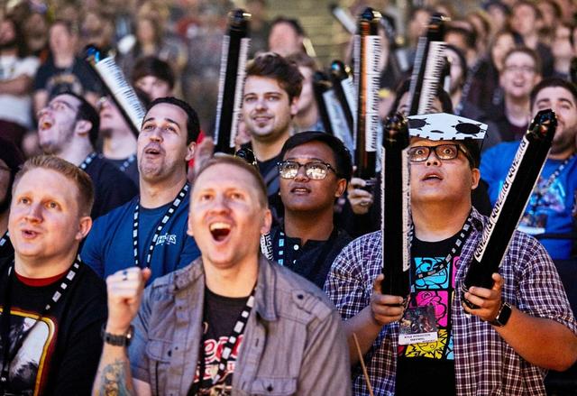 粉丝们聚集在暴雪嘉年华2016赛事的现场。