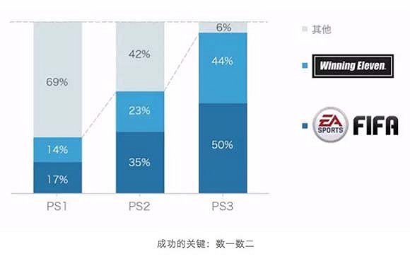 以足球游戏为例。第一名是FIFA,第二名是Winning Eleven。大家对第三名则知之甚少。拿全球的PC游戏来举例,往往第一二名占据了主流的大众市场,加起来通常能够占到整个游戏类型当中的90%以上的市场份额。