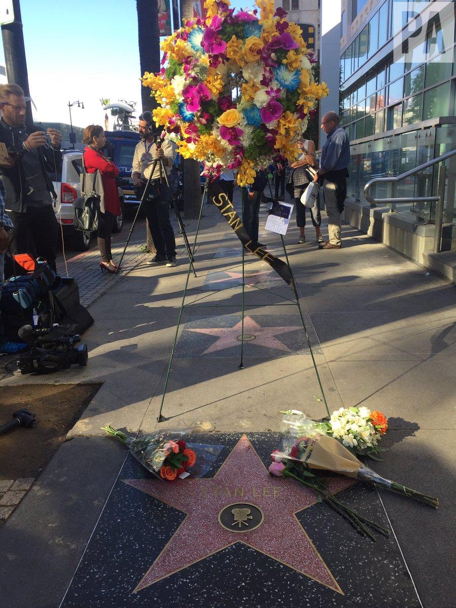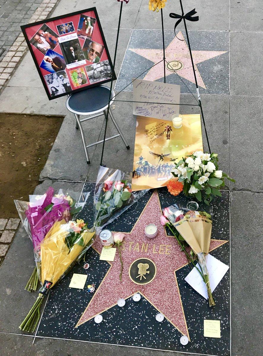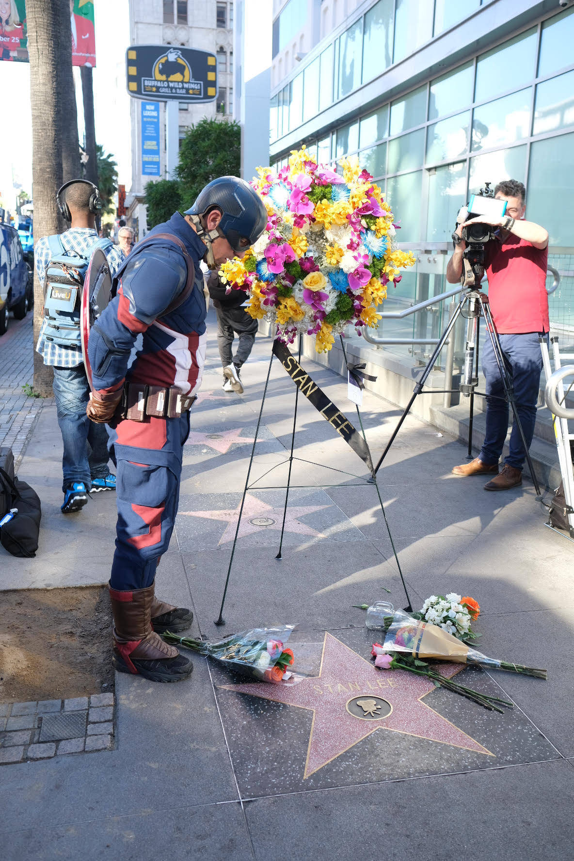 今天,来自各地的粉丝在好莱坞纷纷在星光大道上献花,悼念已去世的斯坦·李。