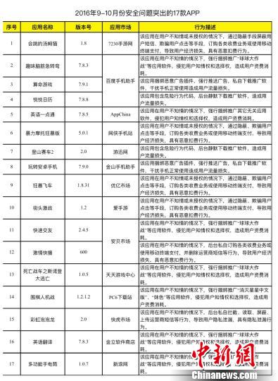17款APP存在恶意扣费等问题含多个游戏应用 |