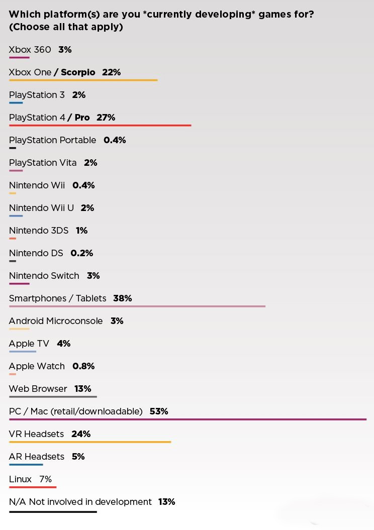 根据游戏开发组织GDC最新调查数据,PC平台仍是最常见的目标平台,全球4万5千个游戏开发者,超过53%制作人宣称,即超过2万制作人正为PC打造游戏。